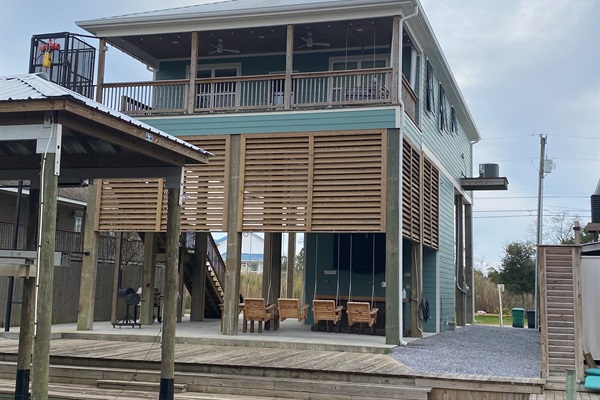 Swing bed sunset with porch lights